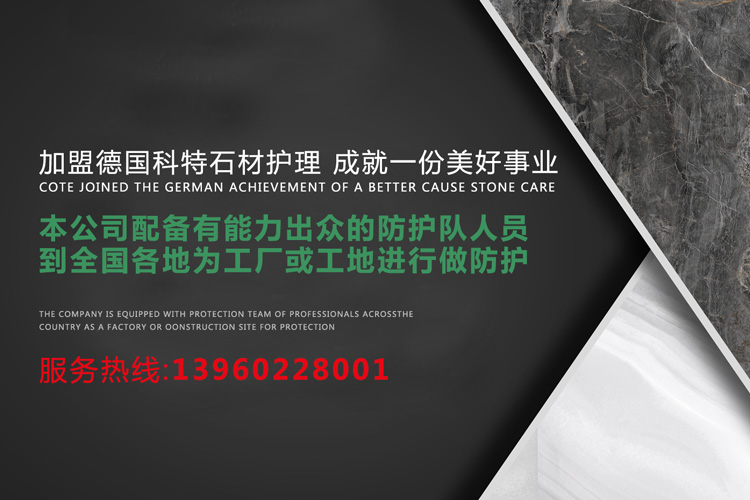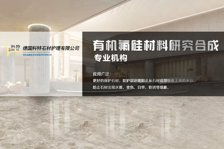 福建泉州科特新材料有限公司(Germany Kurt Ke Te)是德國(guó)從事有機(jī)氟硅材料研究合成的專業(yè)機(jī)構(gòu)。對(duì)于一些吸水性基材(石材、磚瓦、混凝土),它讓氟硅元素的有效成分滲透到基材的空隙(毛細(xì)管)中,在基材內(nèi)部形成一個(gè)防護(hù)層,表面達(dá)到防油效果,同時(shí)保持石材的透氣性,從而更好的保護(hù)石材。此外,防護(hù)層還能阻止從石材底部吸收上來(lái)的水分,防止石材出現(xiàn)水斑、變色、白華、鐵銹等現(xiàn)象。